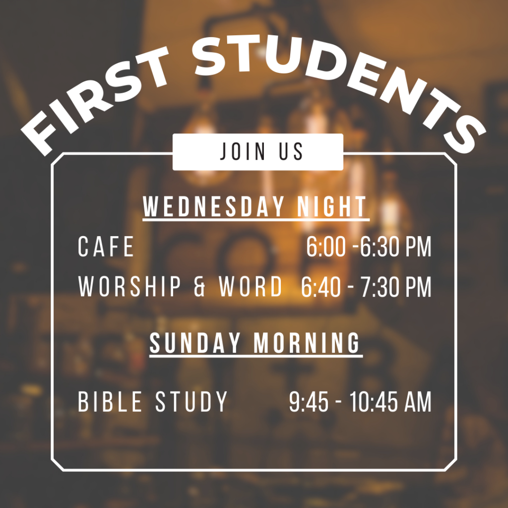 Students from 7th to 12th grade. Join us in the student center for a meal starting at 6pm followed by Worsh ...
